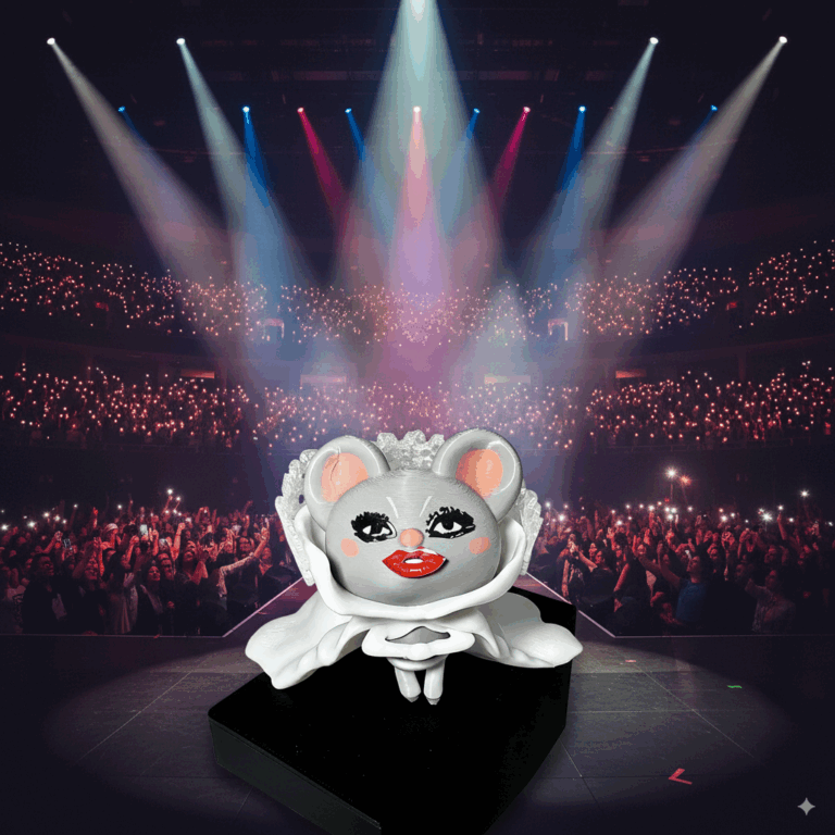 Cute Gaga-inspired Labubu doll with transparent white PLA design and lace edge, inspired by Abracadabra MV Grammy Ads 2025